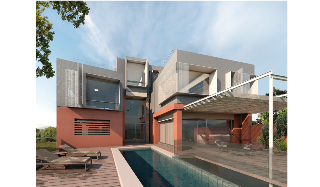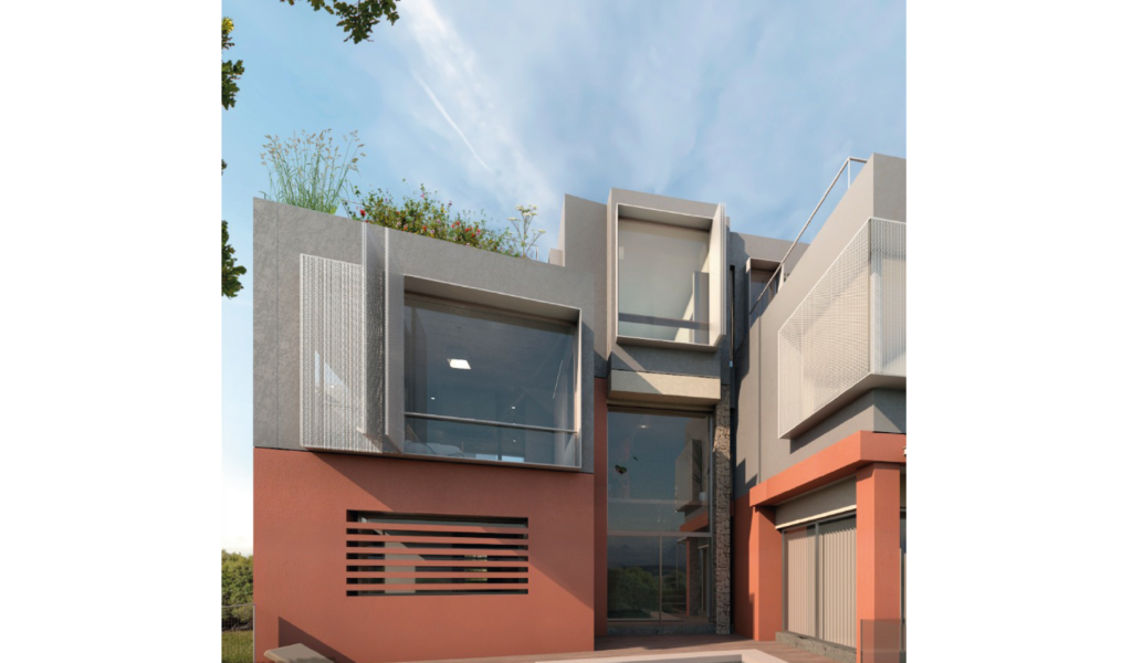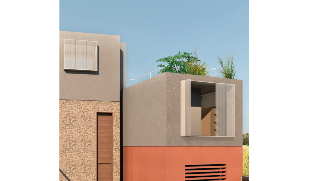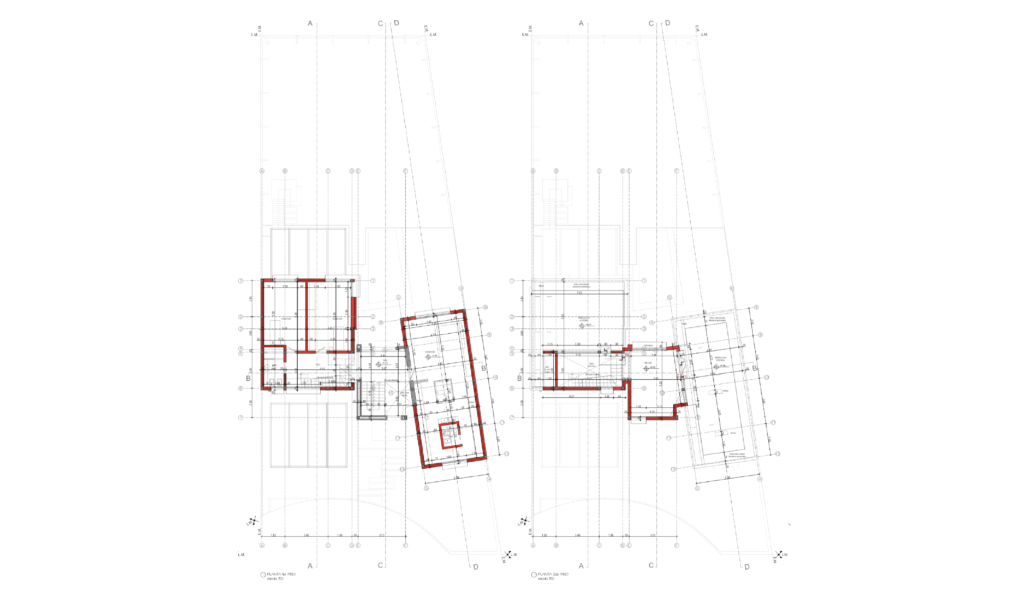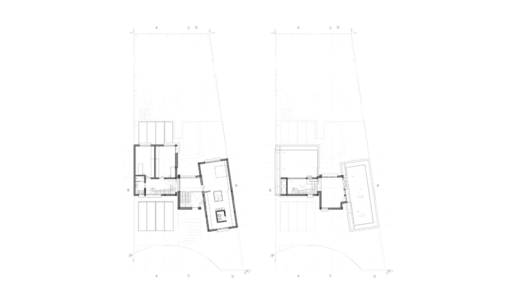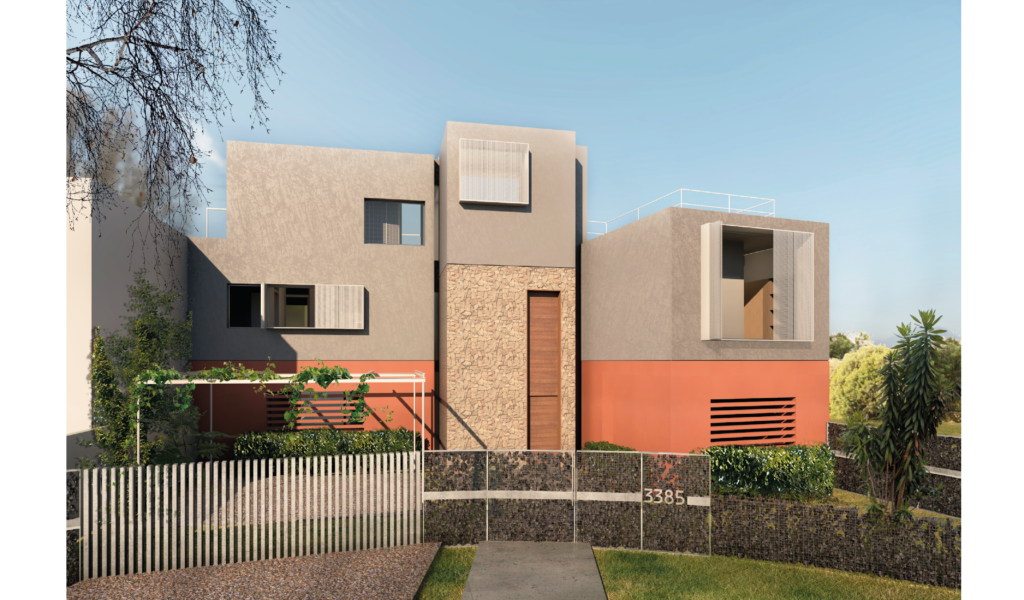 En la superficie duplicada en la vertical se define un ala para habitación en suite y otro ala con un espacio escritorio/núcleo de doble altura que deriva a dos habitaciones, baño compartido y mirador en ultima planta.