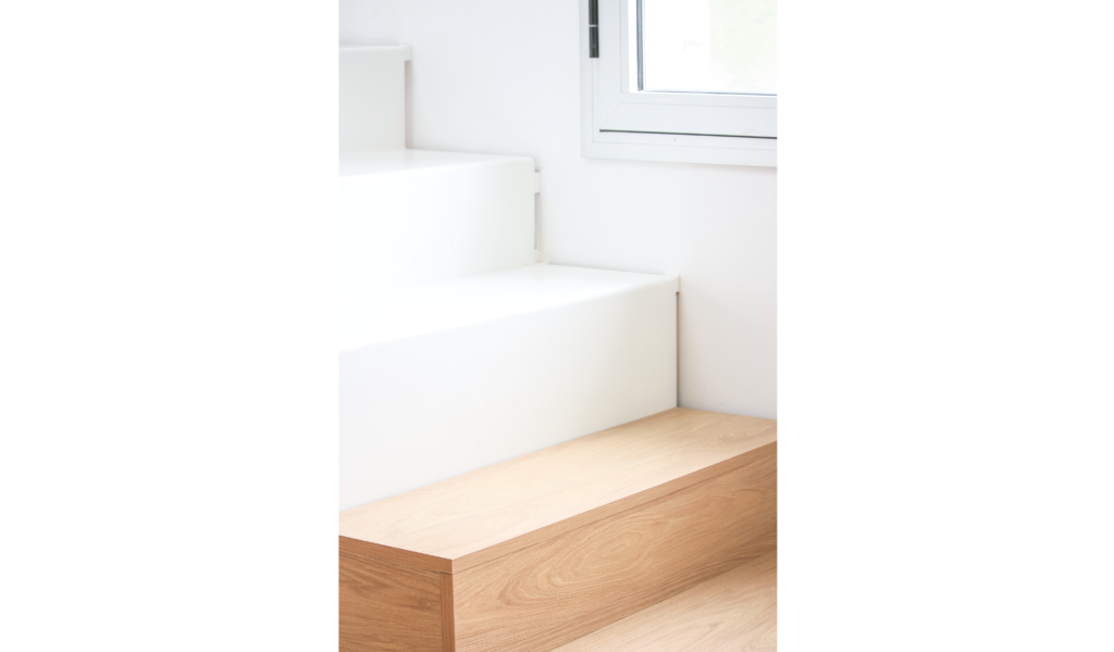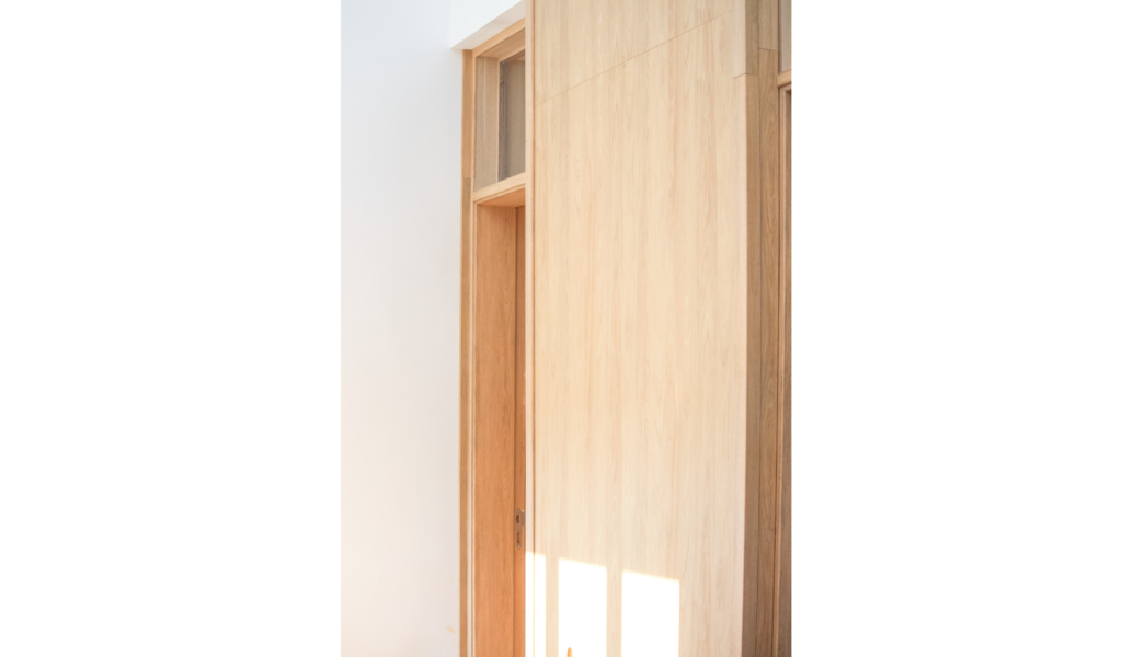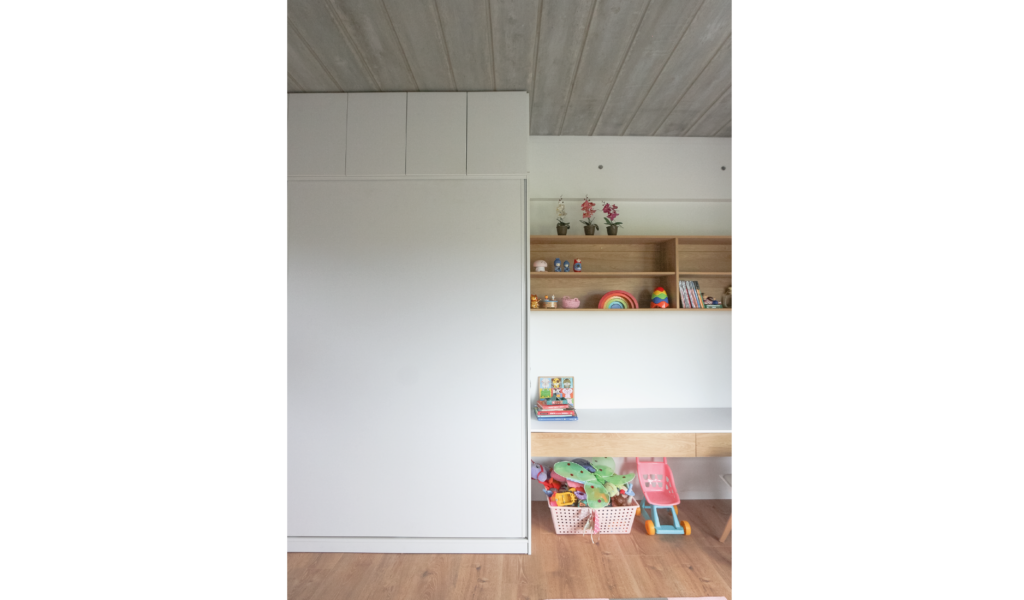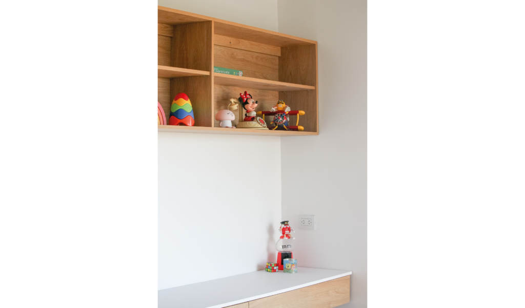 El núcleo recibidor, repartidor, escritorio, además de ser nodo conector es una extensión de los cuartos de las crianzas. Los mismos se conectan con este núcleo a través del cerramiento que comparten, que es también una continuación virtual del piso. Los flotantes de madera transforman el espacio en un gran área blanda.