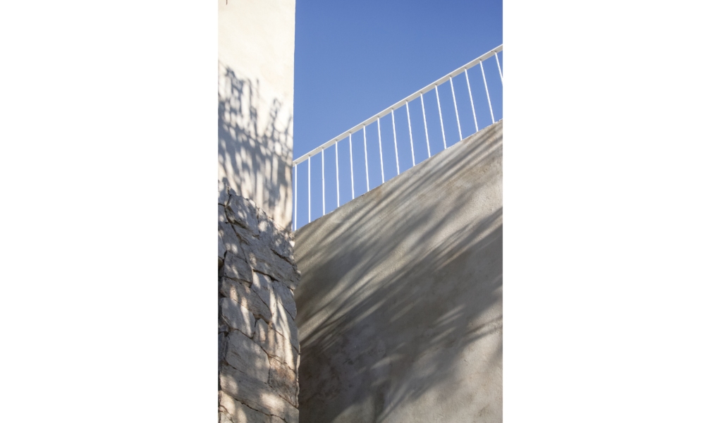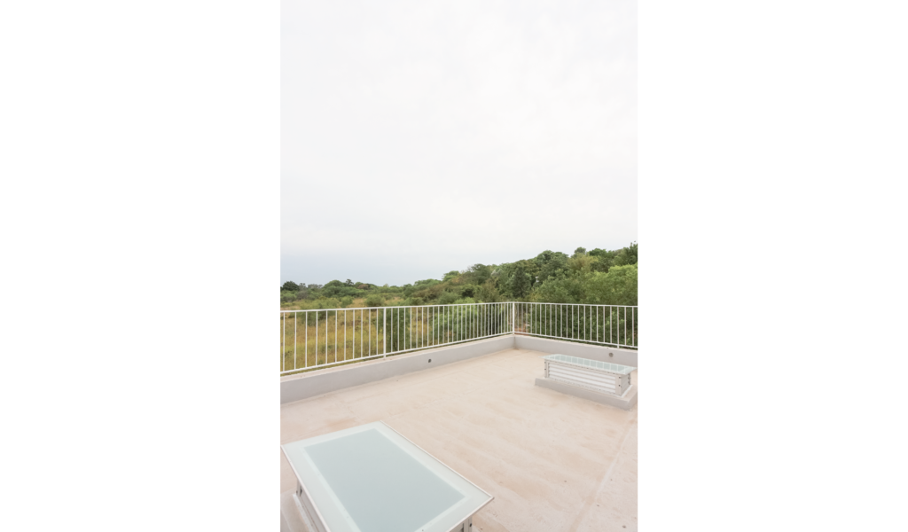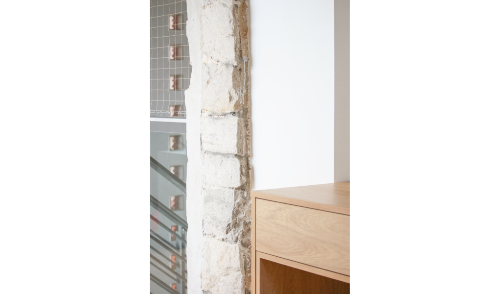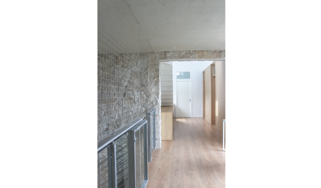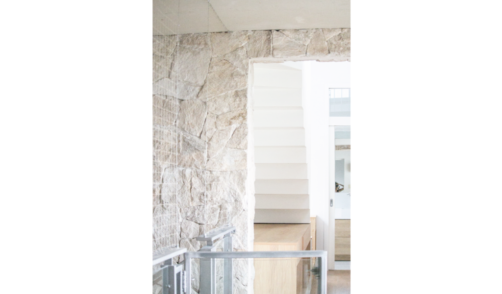 Toma como punto cero potenciar la vista privilegiada del lugar y una intervención respetuosa de lo existente que permita enlazar armoniosamente las etapas de una obra posibilitando una lectura formal unificada del volumen y a su vez posibilite ver la historia. Un volumen yuxtapuesto al pre-existente con una búsqueda material que dialogue. La gama de color de la piedra pre-cedente dio lugar a la paleta de la ampliación, gris + blanco + madera.