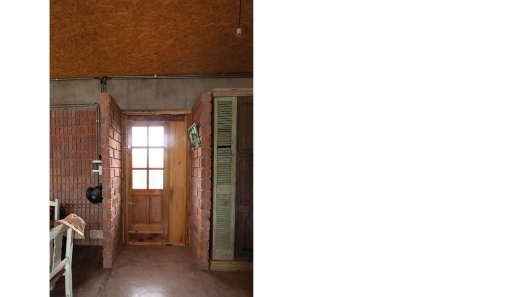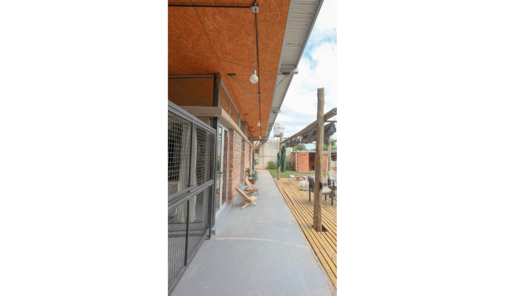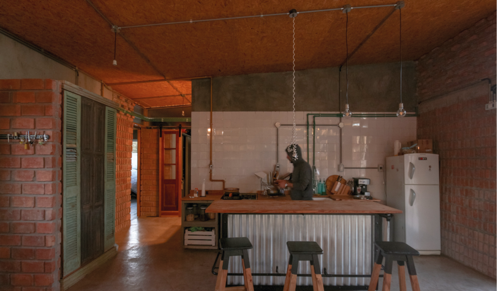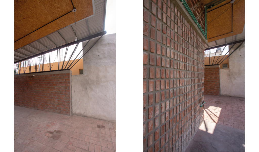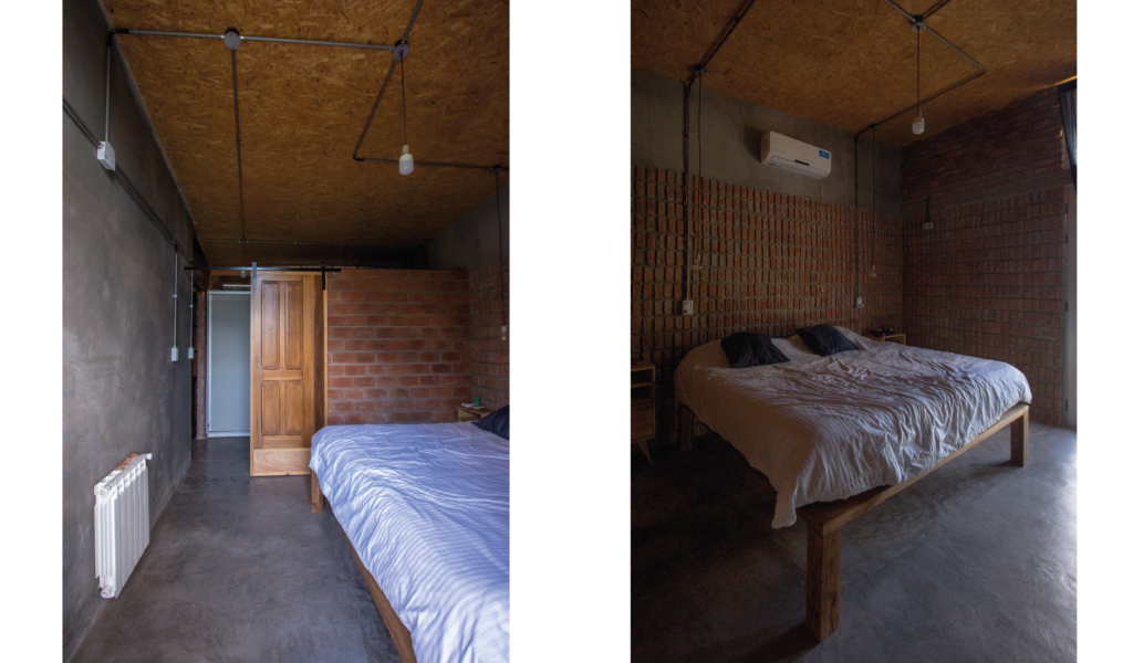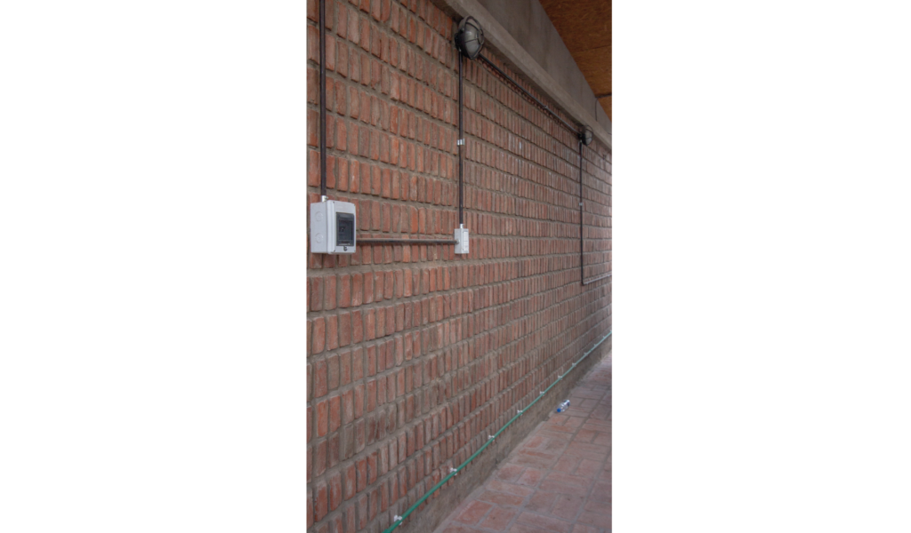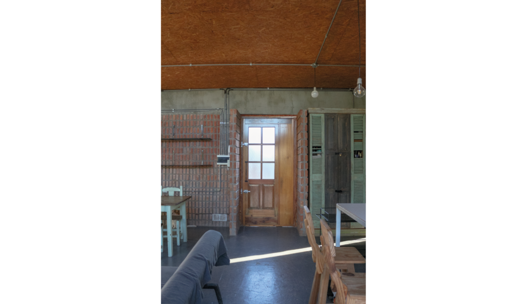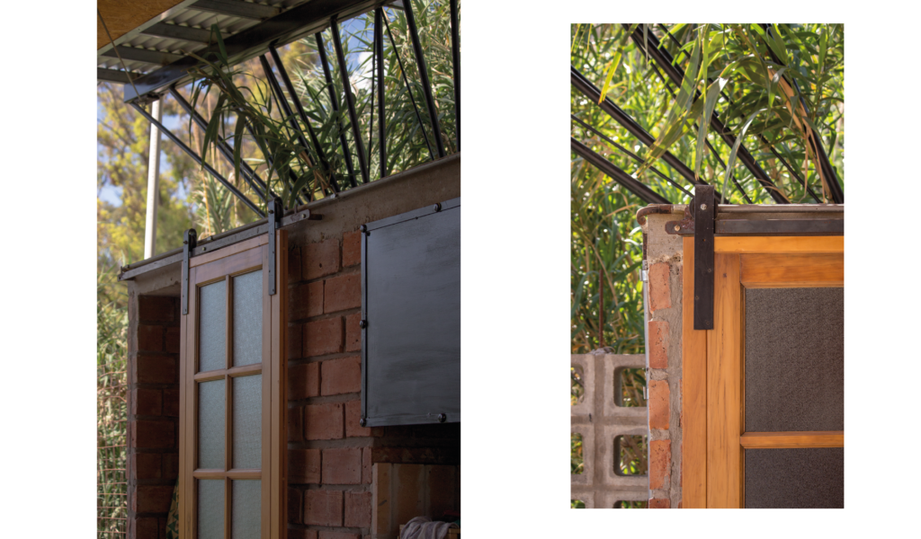 La vivienda busca sustentabilidad, adopta así acondicionamiento con sistema de radiadores por caldera dual y el tratamiento de aguas mediante el uso de biodigestor, la optimización de materiales fue realizada a través de la modulación para evitar cortes y desperdicios tanto en perfilerías, hierros, chapas y placas de cielorrasos. Las aberturas interiores son recicladas, el cerramiento de mampostería de ladrillo visto en ambas caras con aparejo de librero resigna la necesidad de revoques, todas las instalaciones son expuestas al exterior. El proyecto muestra íntegramente su sistema constructivo.