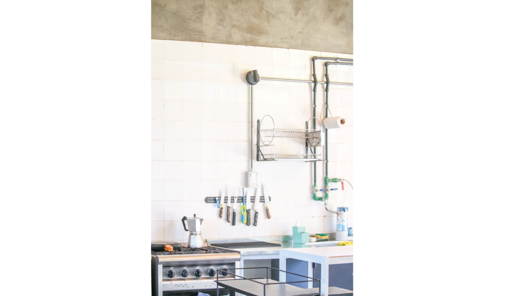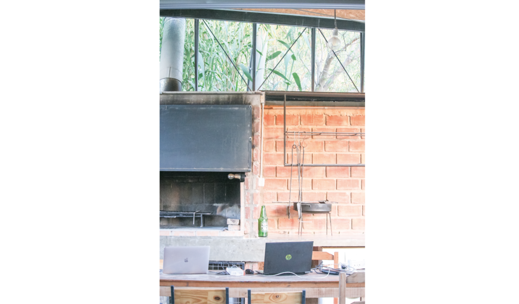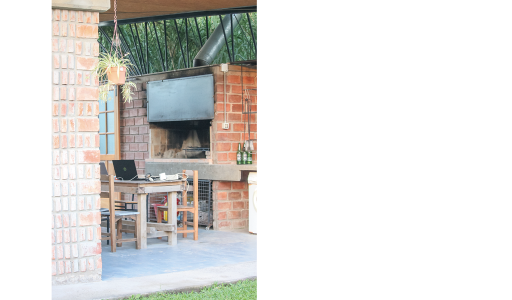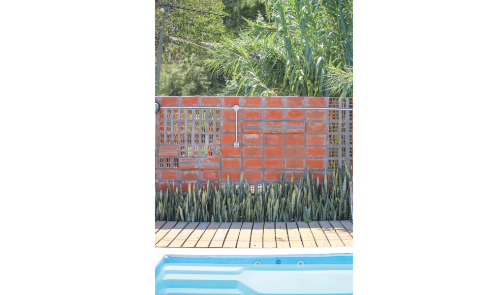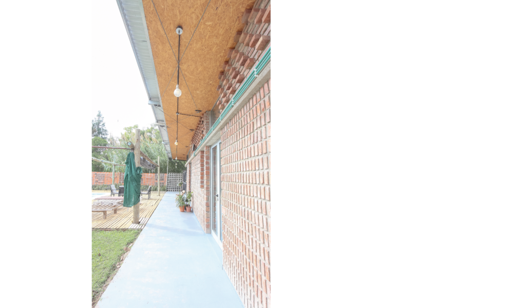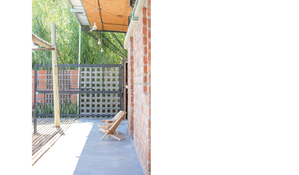 El programa se desarrolla en una única planta, compuesta por un área social que incluye cocina-comedor/estar y toilette, con áreas húmedas nucleadas, y un área intima para 2 habitaciones; un exterior área de galerías y apoyo, un área verde con piscina.
