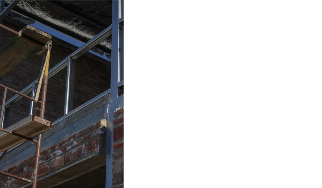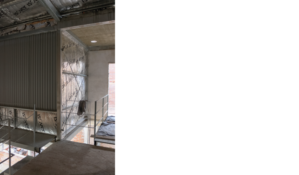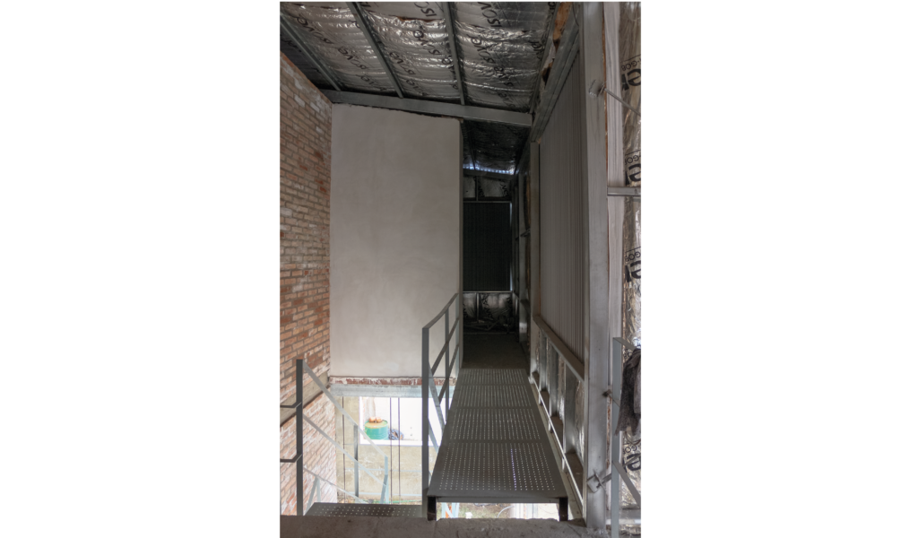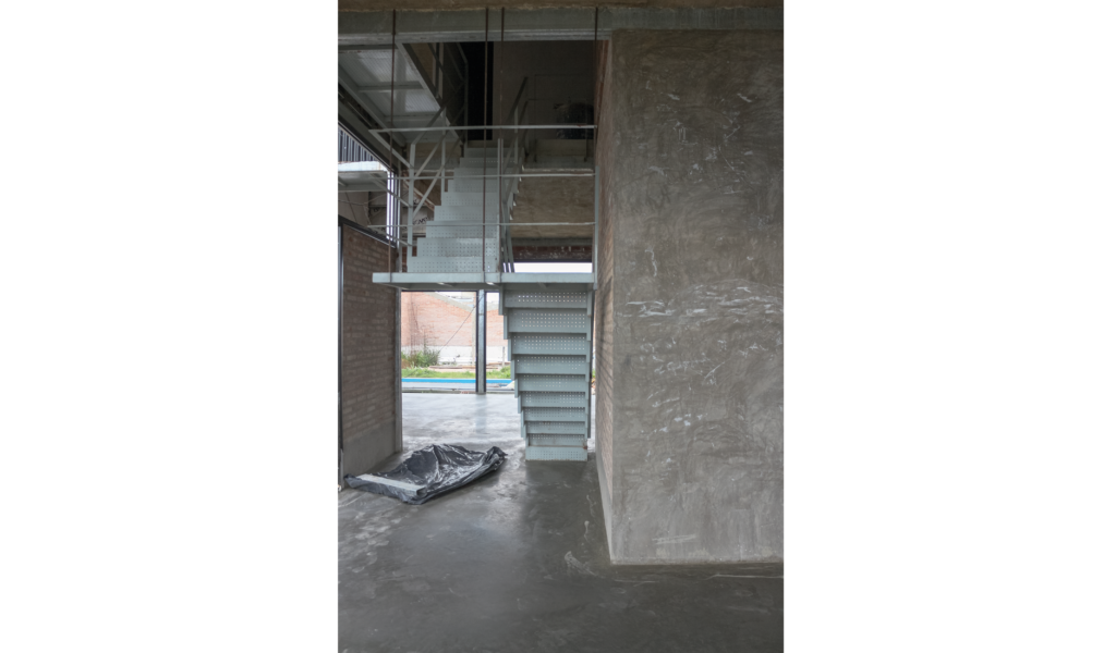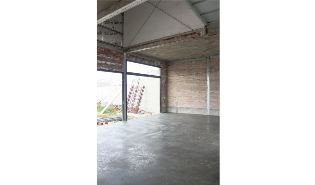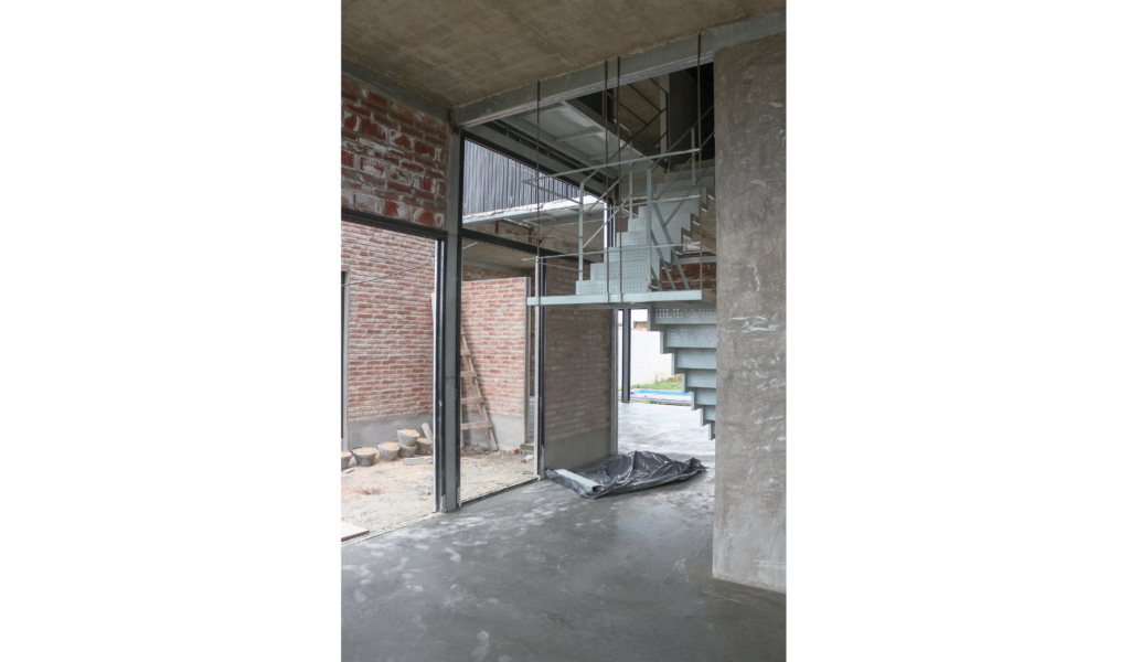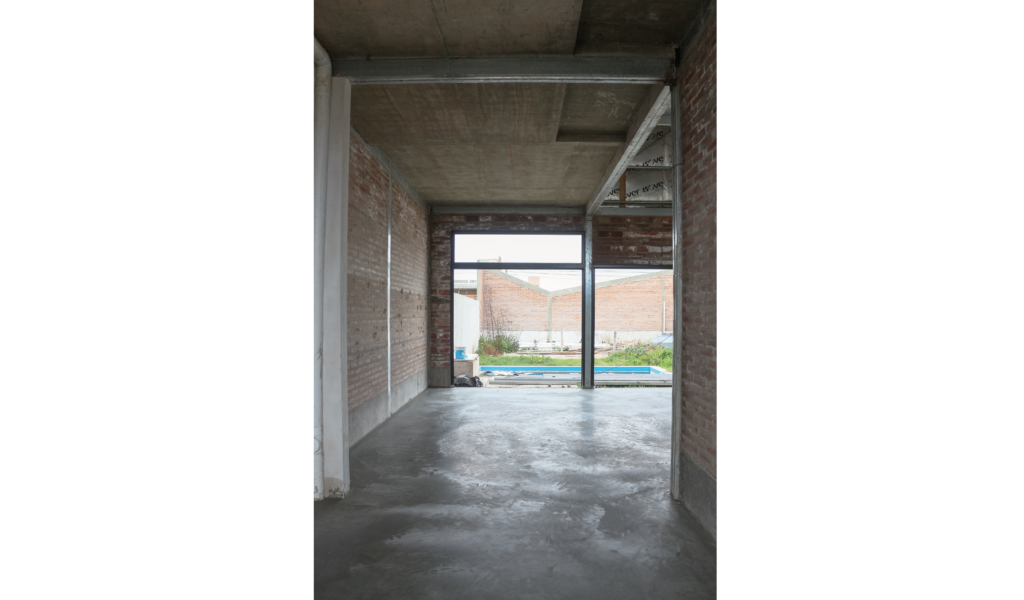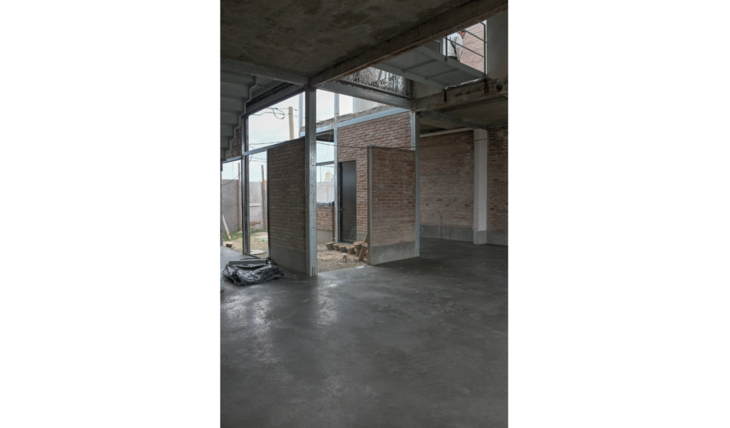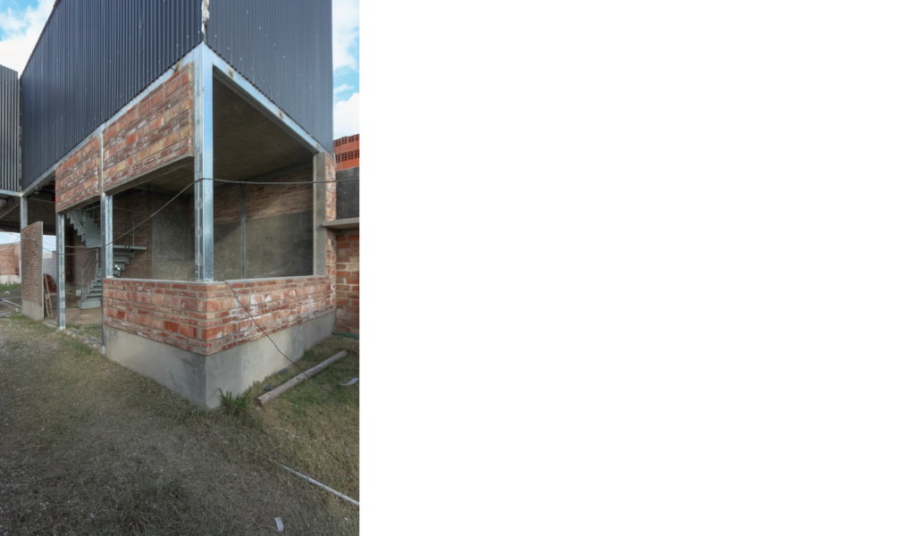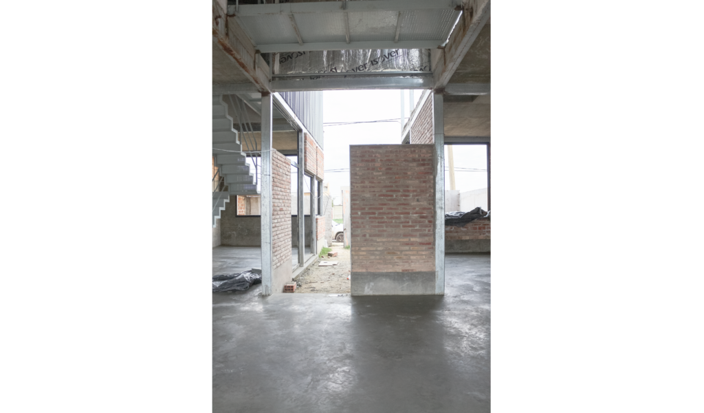 La grilla estructural es de perfilaría metálica en planta baja se cierran con mamposterías y en planta alta con chapa, los materiales están crudos.