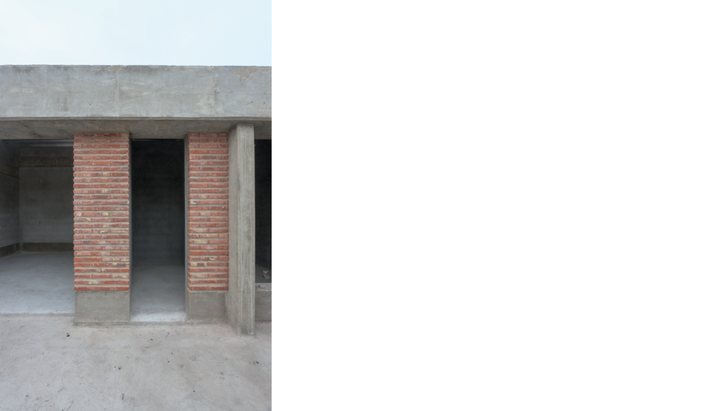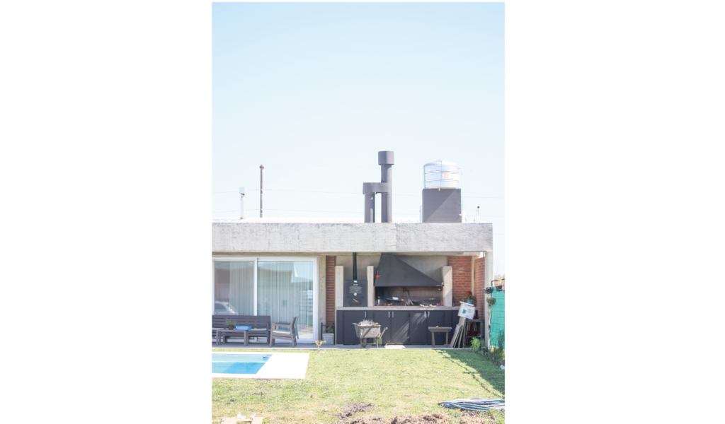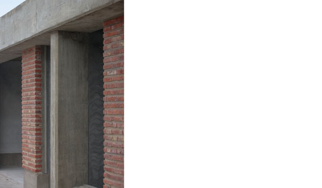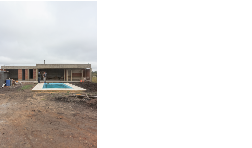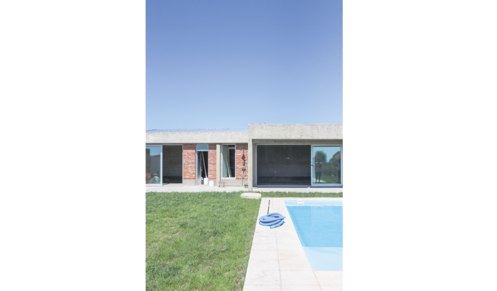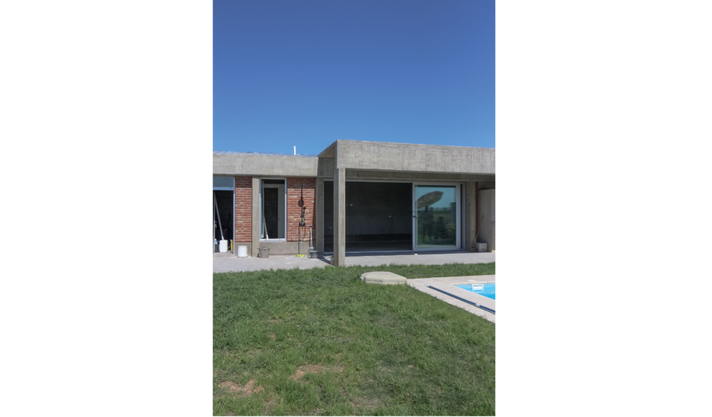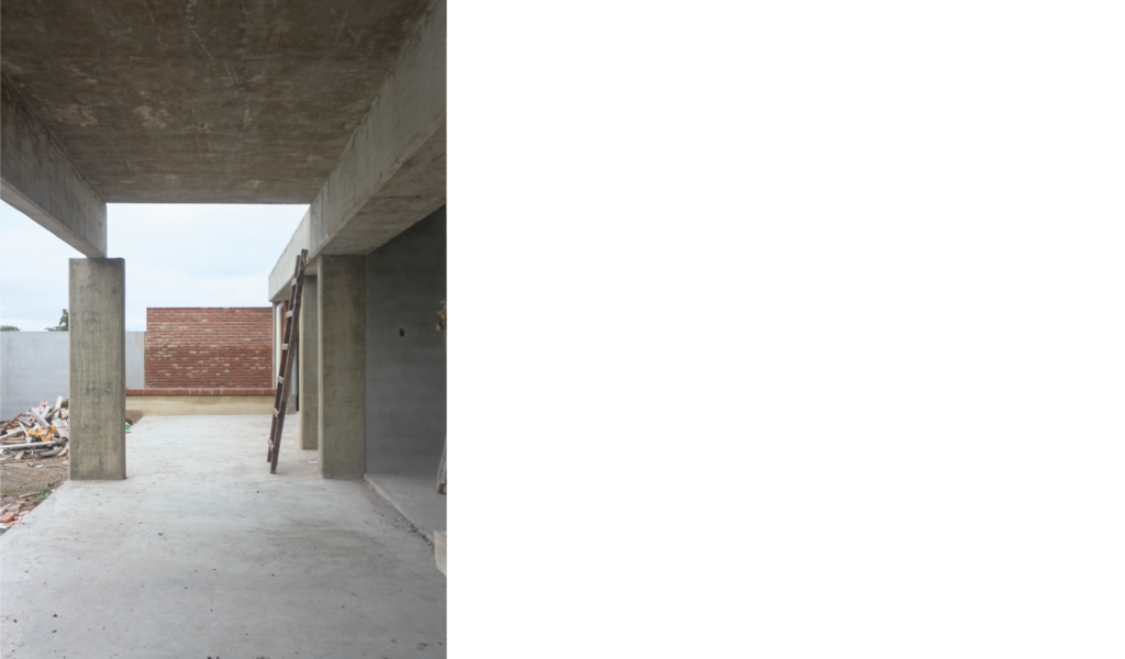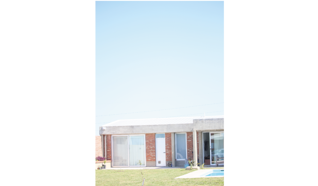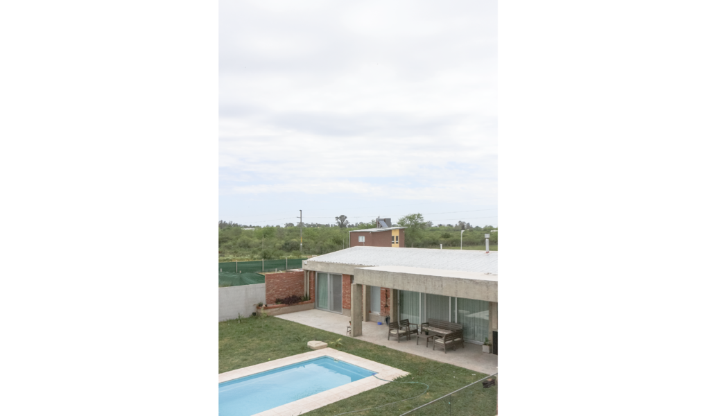 El terreno se sitúa en un loteo nuevo en una zona alejada del centro, en Villaguay Entre Ríos. El planteo se estructura a través de una costilla de servicios que divide por un lado el área social y por el otro el área privada de la vivienda, esta costilla a su vez se corta transversalmente justo al medio donde posee la escalera con un patio interno de cada lado, transformandose en núcleo / espacio conector que separa y une los ambientes. En planta baja se encuentran al norte living + cocina / comedor y al sur dos estudios + taller – uno de los cuales posee ingreso independiente pasando por cochera y patio interno, dando libertad a un uso futuro de oficina que pueda plantearse independiente a la vivienda.